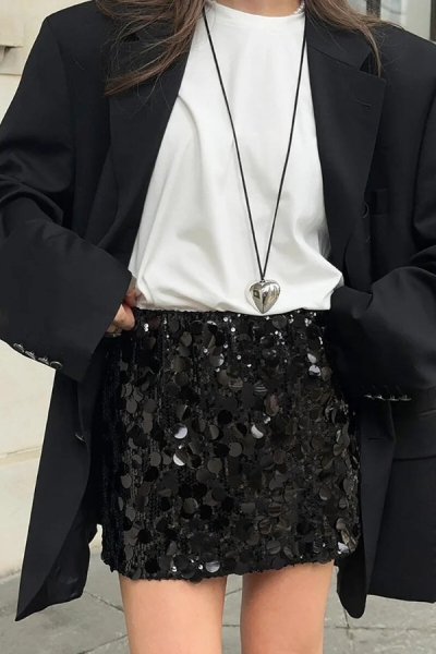 Sparkling Sequin Bodycon Mini Skirt-Black