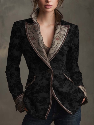 Elegant Deep Plum Floral Embossed Velvet Blazer