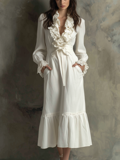 Retro Ruffle Neck Midi Dress