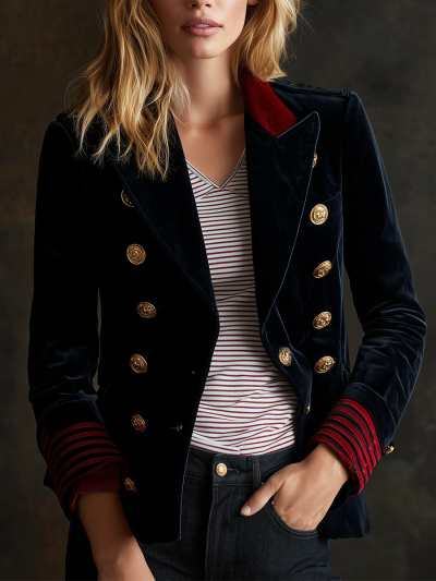 Navy Velvet Military Red Accents Blazer