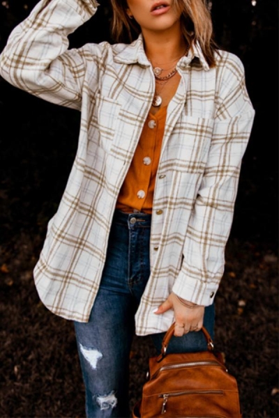 Plaid Pattern Buttoned Shirt Coat with Slits