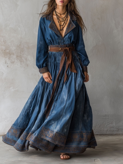 Quiet-boho Antique Rose Velvet Bloom Maxi Dress