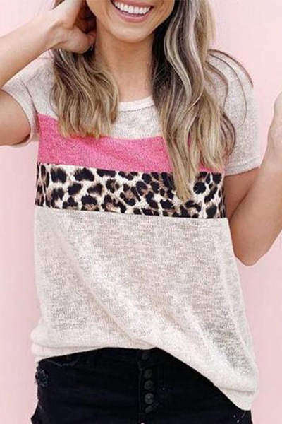 The New Leopard Print Clashing Color Round Collar Casual Loose Pullover