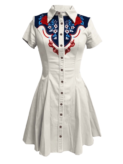 Retro Contrast Trim Floral Embroidery Woolen Polyester Mid-length Jacket