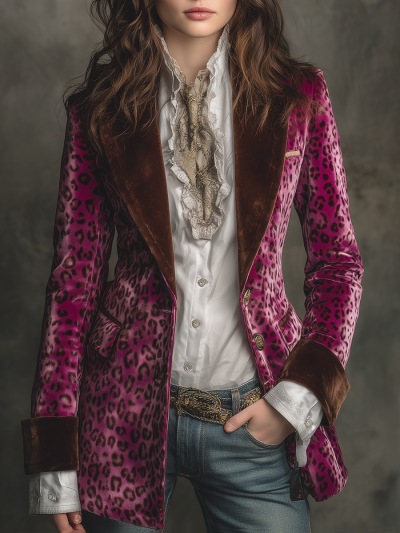 Vintage Leopard Print Polyester Velvet Blazer