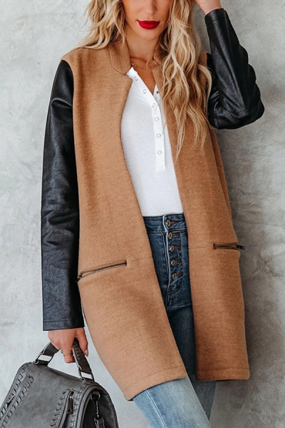 Fashion Woolen Stitching Solid Color Pocket