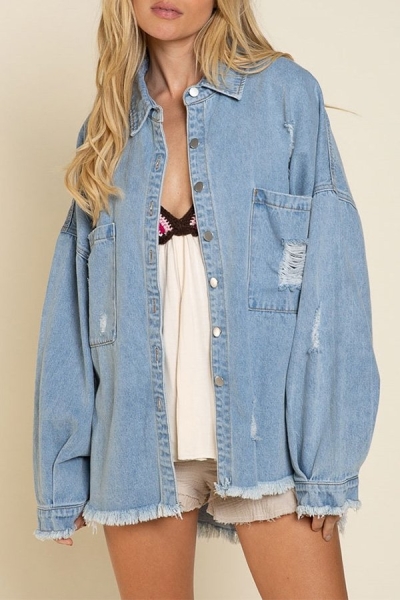 Vintage Faded Wash Ombre Denim Zip-Up Shirt