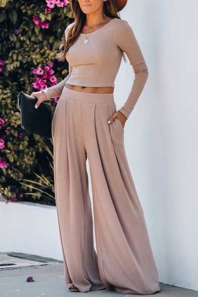 POCKETED RIBBED WIDE LEG PANTS