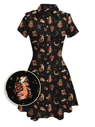 Tattooed Sailor And Mermaid - 100% Cotton Double Pocket Dress