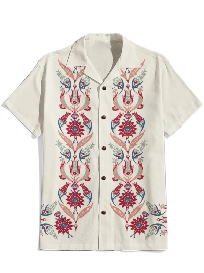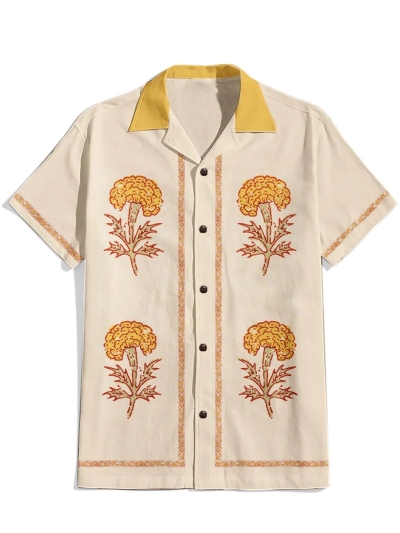 Vintage Flower - 100% Cotton Cuban Collar Shirt