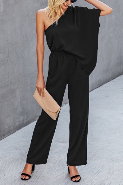 Bat Sleeve One-shoulder Solid Jumpsuit