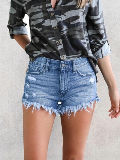 Casual Frayed Hem Denim Shorts