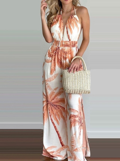Sling Leaf Print Jumpsuit