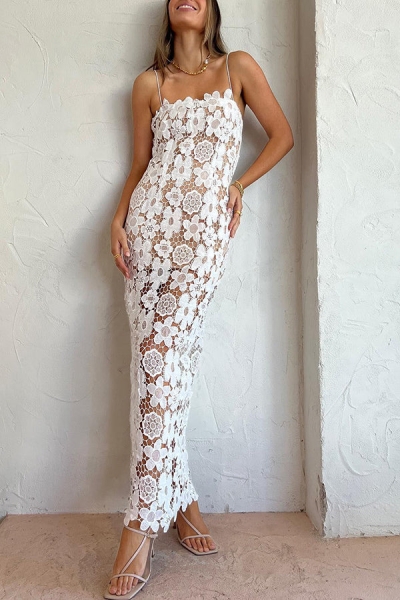 Feel Luxurious and Beautiful Crochet Flower Lace Maxi Dress