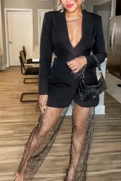 Best Layering Items Diamond Mesh Elastic Waistband Wide Leg Pants