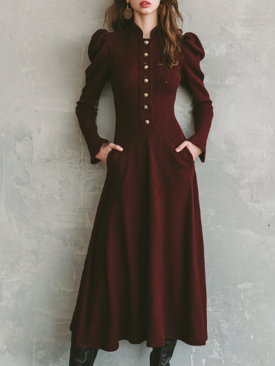 Vintage Metal Button Knitted Midi Dress