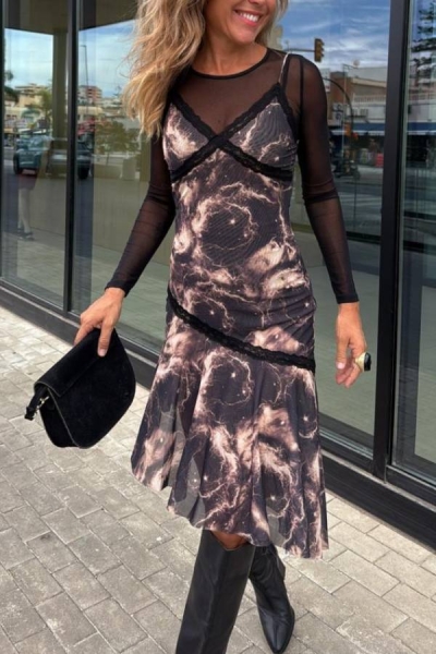 Loose and fashionable V-neck printed dress