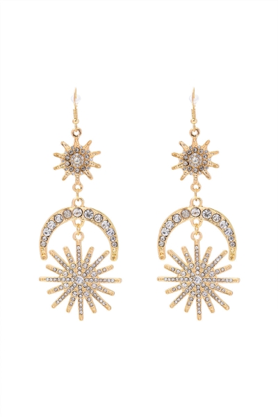 Sun & Moon Rhinestone Decor Drop Earrings