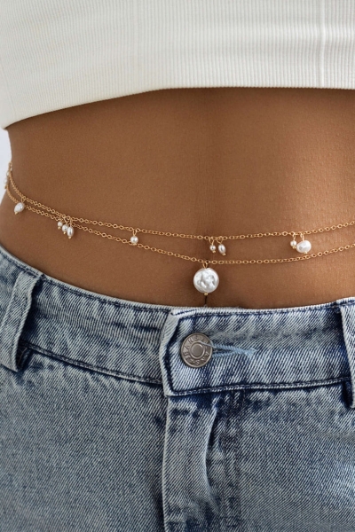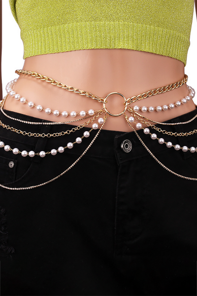 Layered Pearls Metallic Fashionable Waist Chain