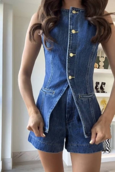 Abel Denim Button Up Princess Seams Pocket Vest Top