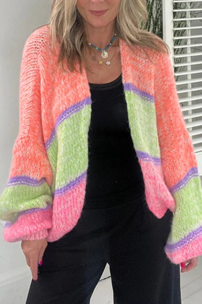 Light Up Any Scene Mixed Colours Ballnoon Sleeve Loose Cardigan