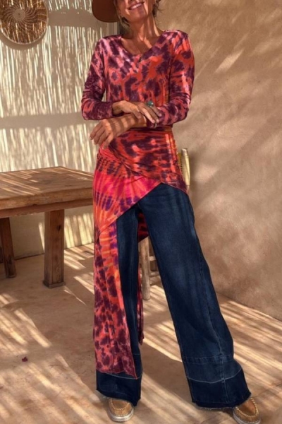 Exclusive Style Tie-dye Print Long Sleeve Tie-up Crop Cardigan