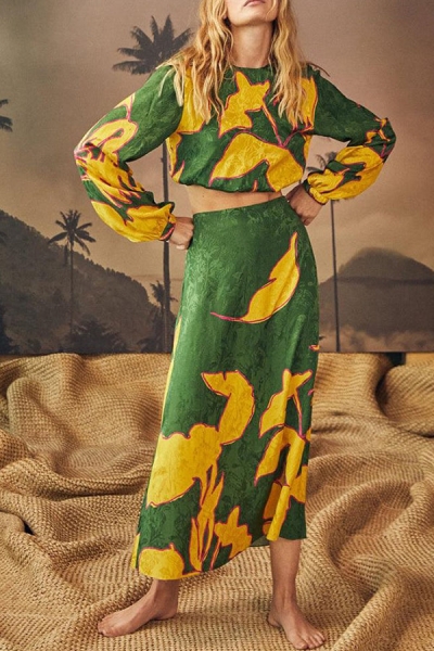 Fashion Print V Neck Long Sleeve Belt Belt Dress