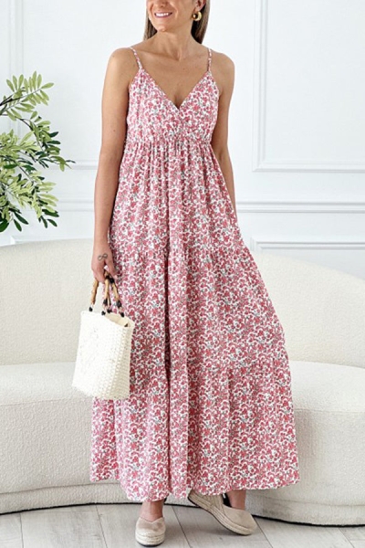 Hana Floral Spaghetti Strap Deep V Holiday Long Dress