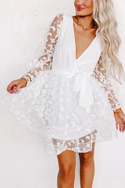 Butterfly Kisses Applique Tulle Patchwork Belt Wrap Mini Dress