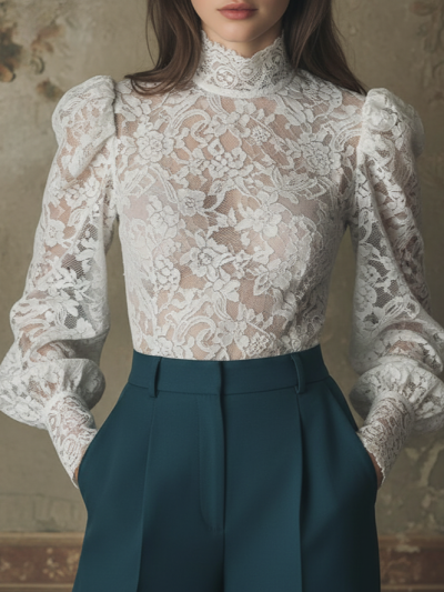 The Elegant Lace High-Neck Blouse