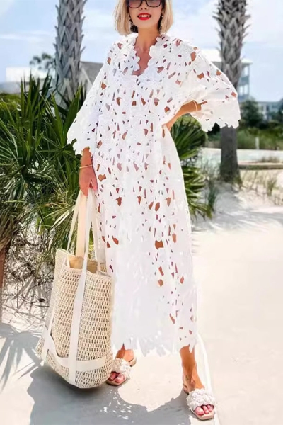 Floral Printed Plunging Half Sleeves Loose Maxi Dresses