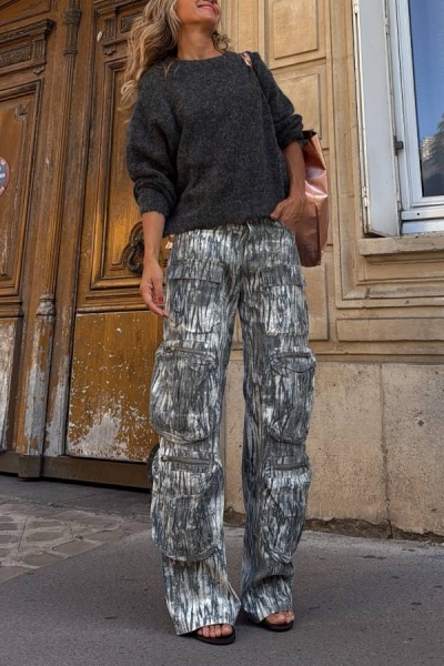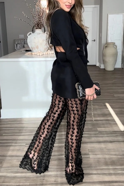 Queen Temperament Leaf Pattern Mesh High Rise Flare Pants