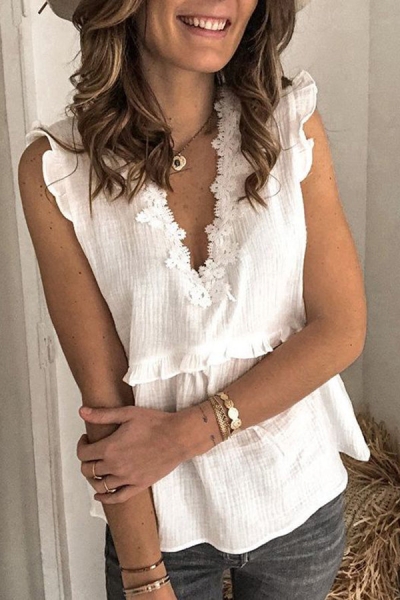 Women's Crew Neck Lace T-shirt Sexy Sleeveless Top