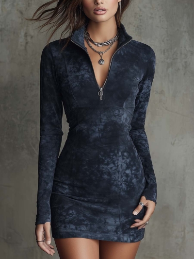 Tie-Dye Printed Eco-Suede Bodycon Mini Dress With Zip Front