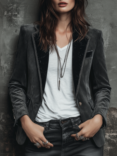Vintage Charcoal Velvet Tailored Blazer