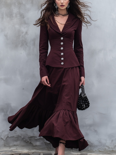Retro Button-down Lapel Slim Blazer Skirt Set