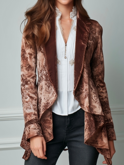 Romantic High-low Velvet Print Draped Blazer Copper Velvet Print