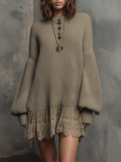 Vintage Nomad Whisper Knit-Lace Layered Mini Dress